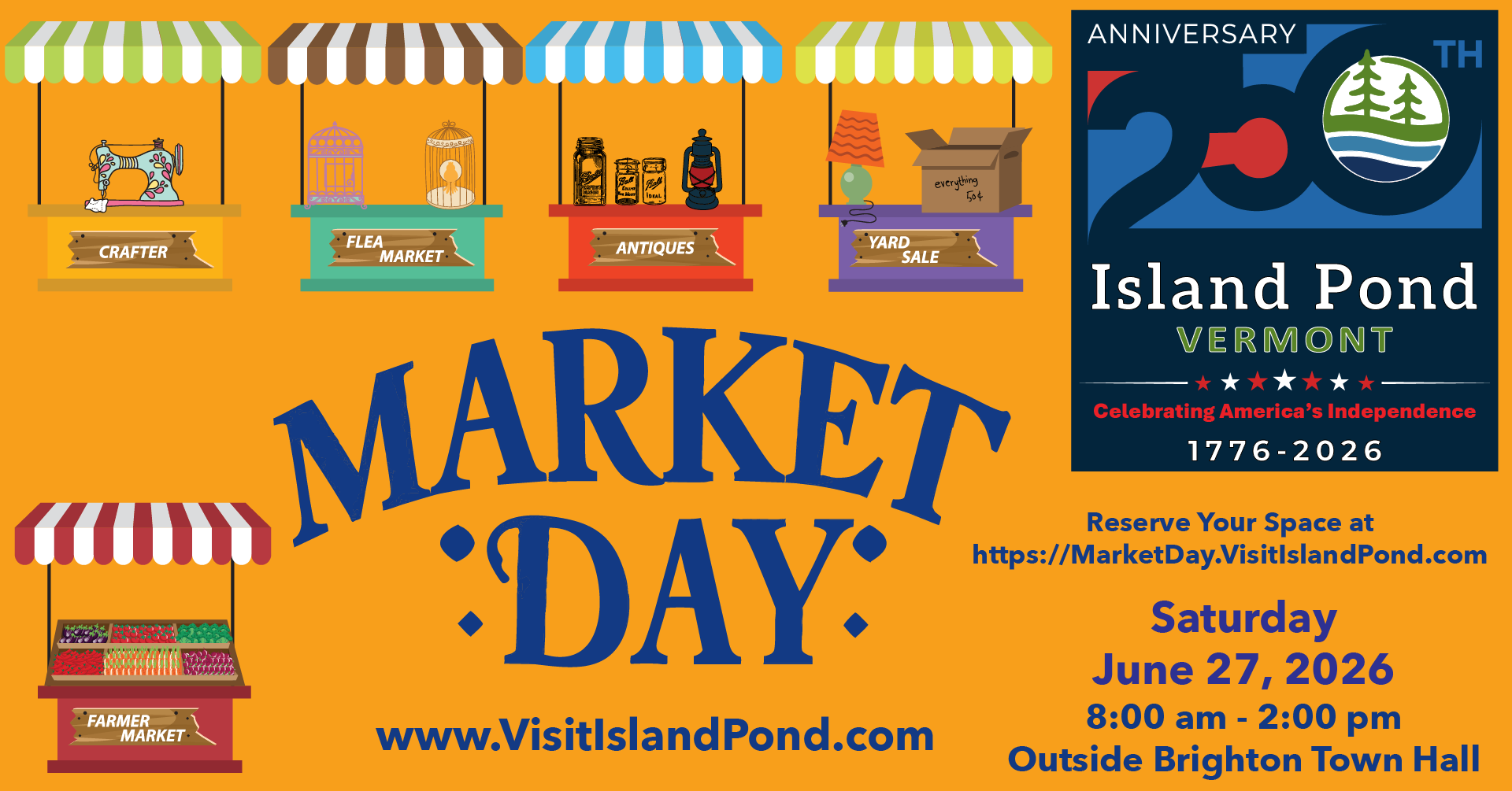 I understand that in order to keep shoppers safe, vehicles will not be permitted in the Market Day area after 8 am, if I arrive after 7:30 am I will need to carry my merchandise into the sales area. I further acknowledge that I will not be permitted to bring my vehicle back into the sales area until 2 pm. Each space will be under a 10' x 10' canopy and must be reserved in advance to ensure availability. Any additional spaces left on Market Day will be filled on a first come, first served basis. Any vendor failing to check in by 7:30 am on Market Day will forfeit their space priority and may lose their space if we have a waiting list. Setup will begin at 6:00 am on Market Day. We look forward to having you with us!!
